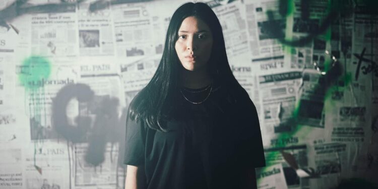 green wormlike aurora streaking Martian sky